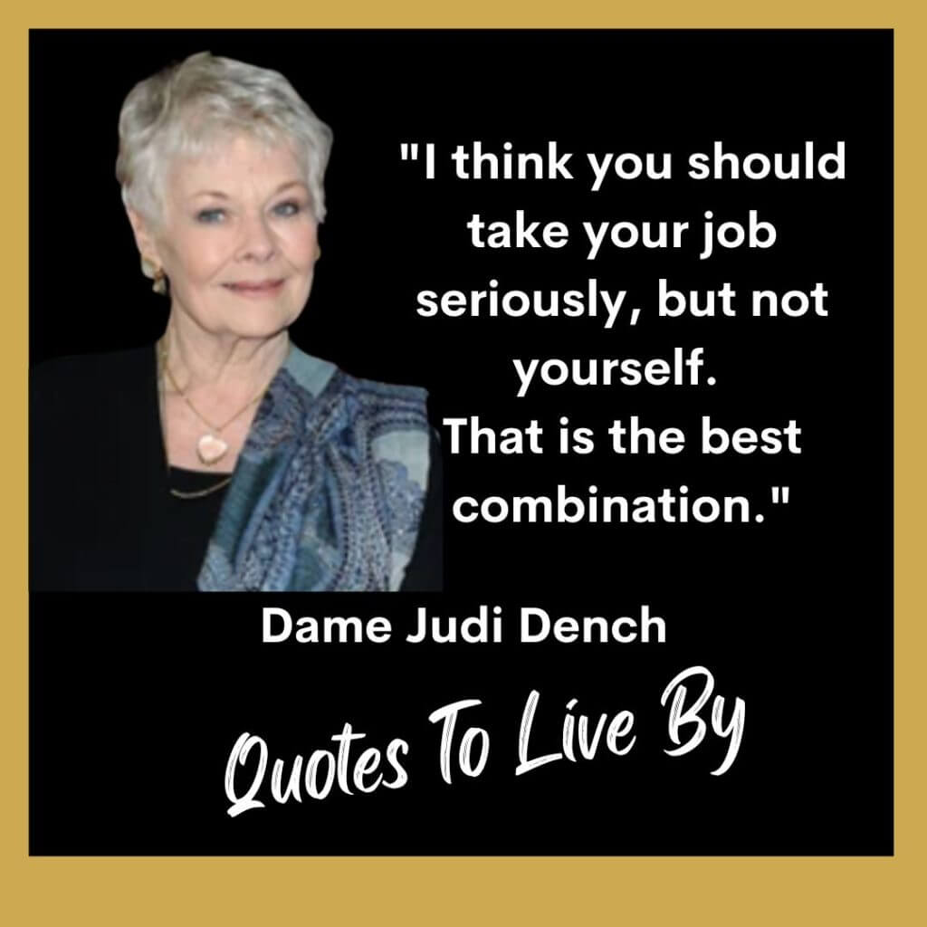 What I really love about Judi Dench is that she didn’t become the icon that she is now, until she was older. She had an early interest in the theatre as her father was the General Practitioner to York Theatre Royal and her mother was wardrobe mistress there. She followed her brother’s footsteps to acting school and started her stage career in 1957. For the next decades she worked in theatre, honing her craft and then started branching off into film and TV.