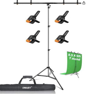 EMART 8.5 x 5ft Portable T-Shape Backdrop Stand Kit with Adjustable Frame, 4 Spring Clamps & Carry Bag for Parties, Photography, Video, and Studio Background Support