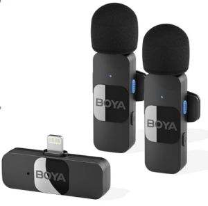 Ulanzi V6 3-in-1 2-Person Plug-and-Play Wireless Lavalier Microphone System. Has both lightning and usbc plugs.