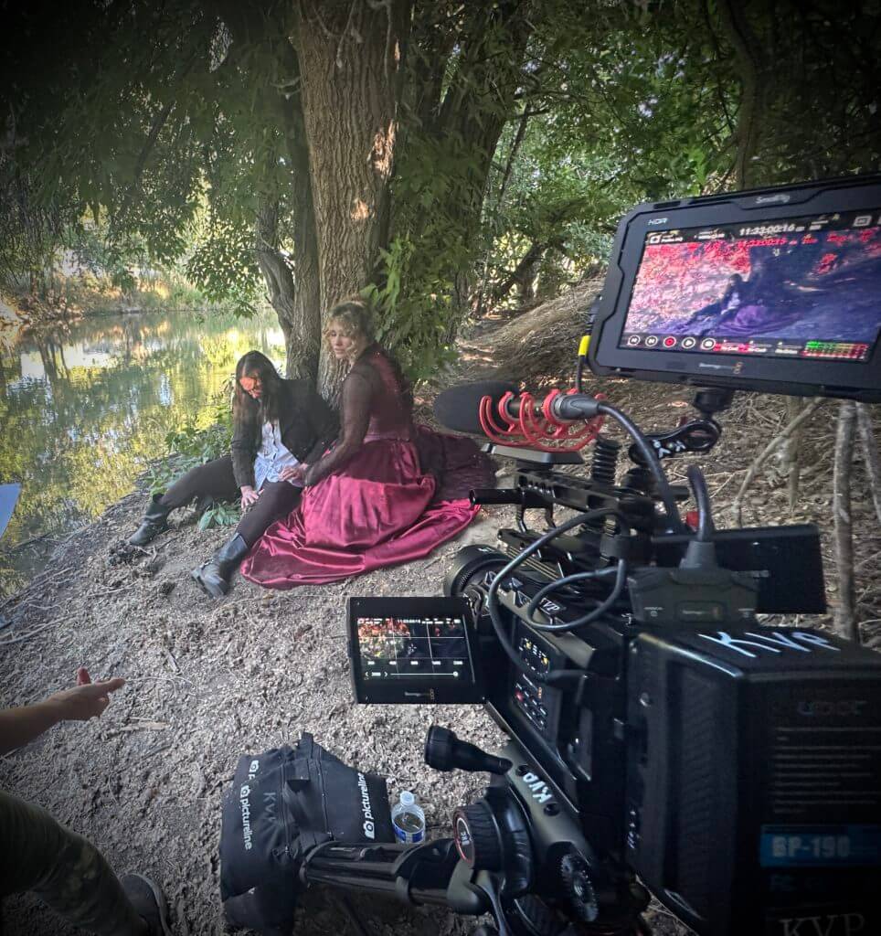 We shot a short film the other day. A period piece. One of my students, Lindsay was in it, and not only did we have her in a period hoop skirt that dragged along the ground, but we also shot in a thicket of trees on the slope of a riverbed.