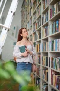 “A BOOK slides off the shelf, revealing JUDITH behind Ben. He turns and whispers to her through the stacks.”